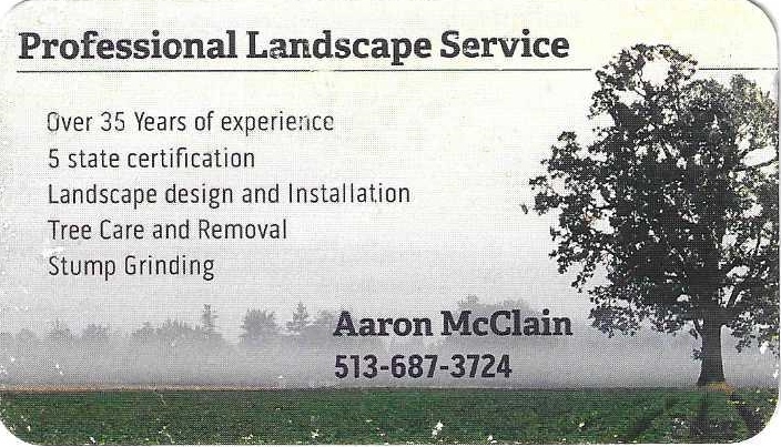 AARON McCLAIN LANDSCAPING - No web Link. Please call 513-687-3724